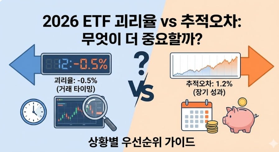 괴리율과 추적오차는 둘 다 “ETF가 내 생각대로 움직였는지”를 보여주지만, 영향을 주는 구간이 다릅니다. 괴리율은 주로 매수·매도 순간의 가격, 추적오차는 보유기간의