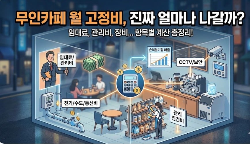 무인카페 월 고정비 핵심 요약 • 핵심 1: 무인카페는 인건비가 줄어드는 대신 임대료, 관리비, 장비 유지비 비중이 커지기 쉬워요. •